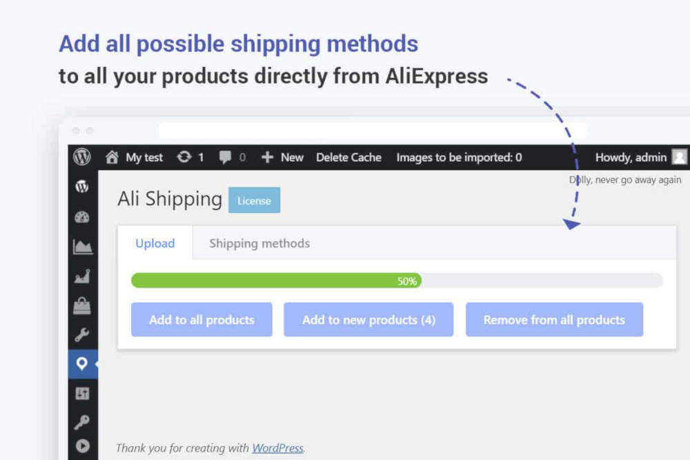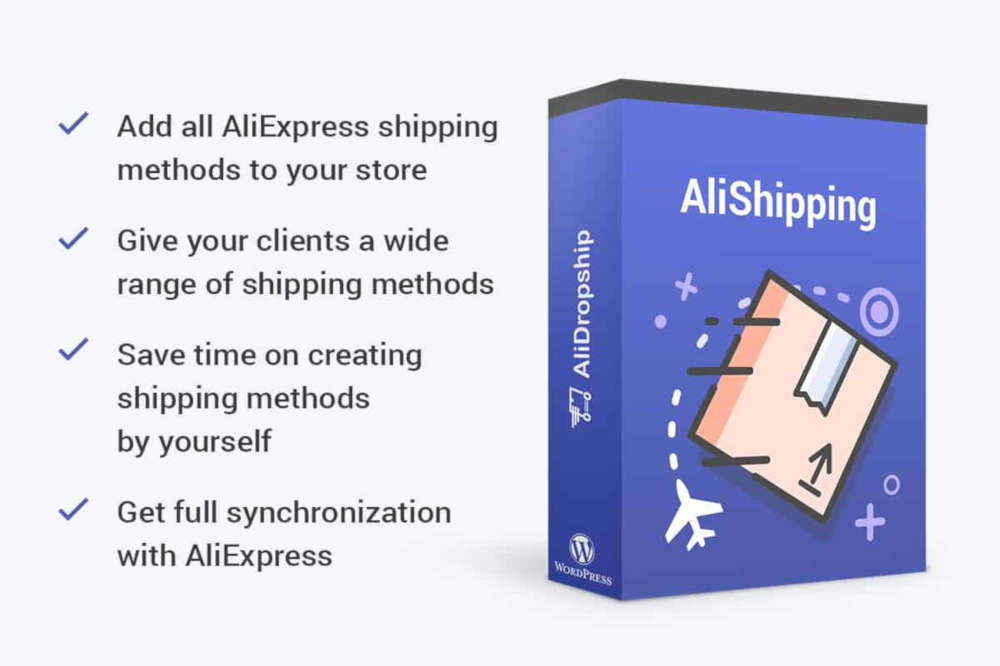 The AliShipping plugin imports shipping options from AliExpress at the push of a button. You can apply the options to all products or only for select items in your AliDropship store.