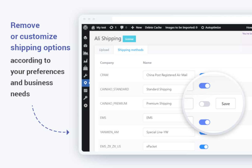 Upon import, the AliExpress shipping options retain their original names. We give you the freedom to rename these choices and select which exact aliexpress shipping methods and aliexpress shipping rates you want to offer. By the way, if you don’t want to show some of them, just remove them from the list!