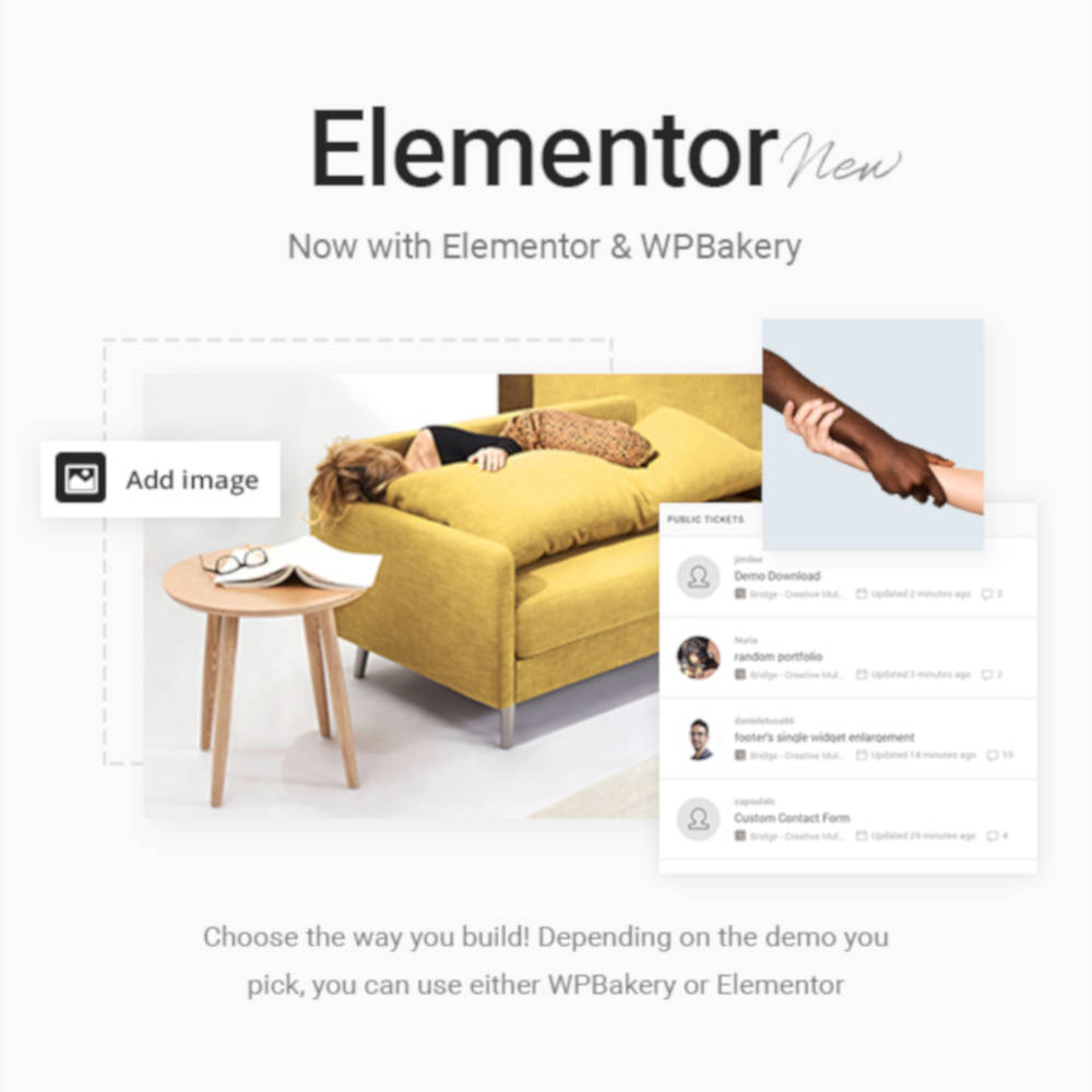 Build with WPBakery or Elementor – it’s your choice!