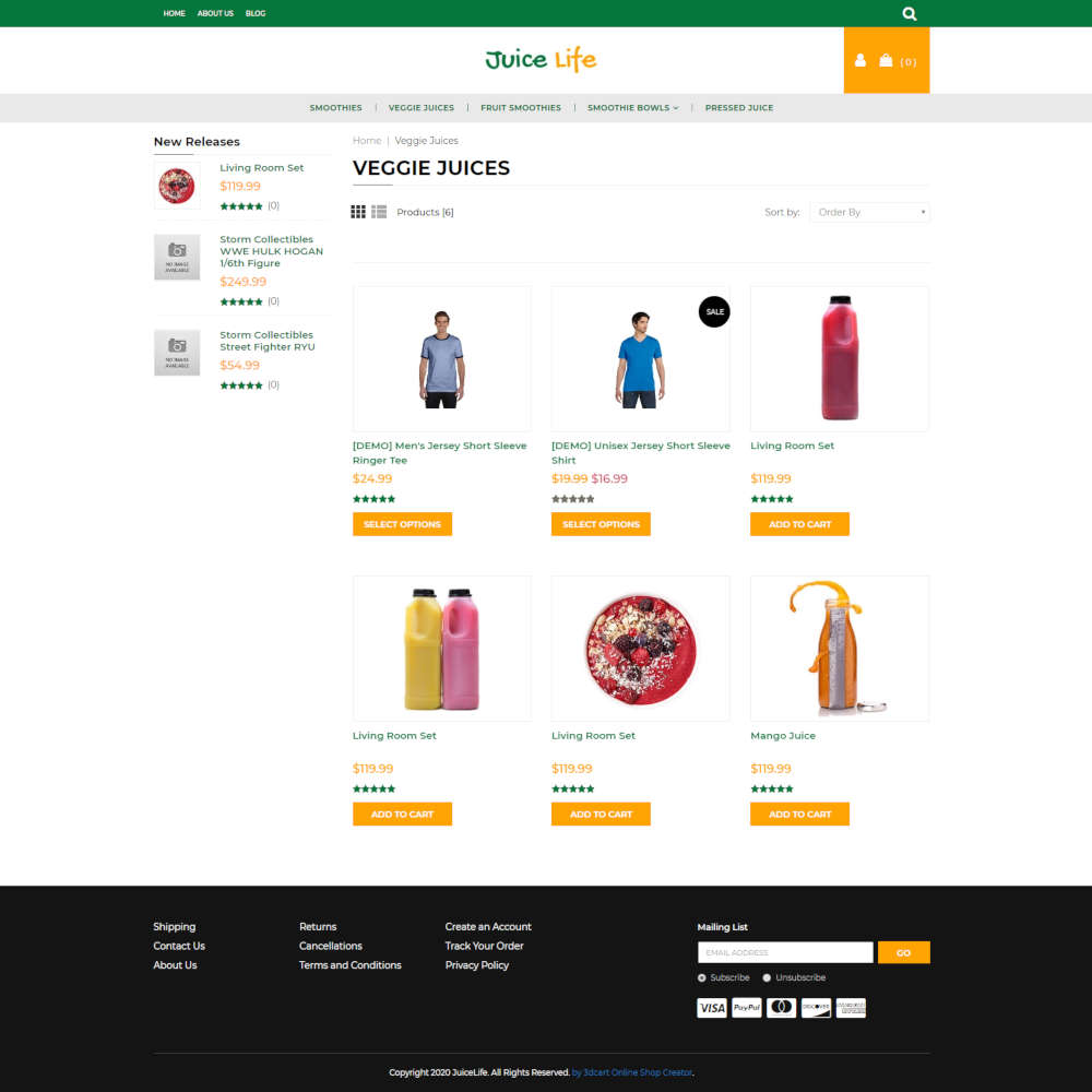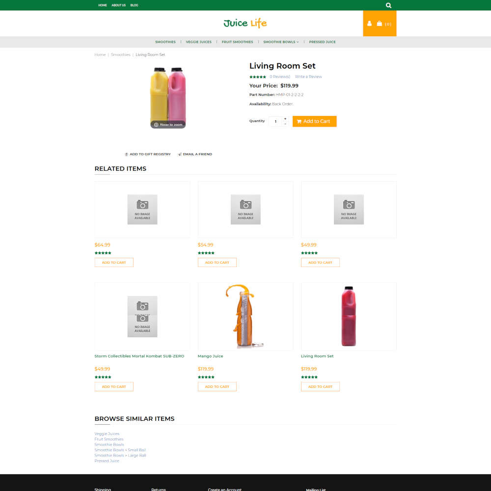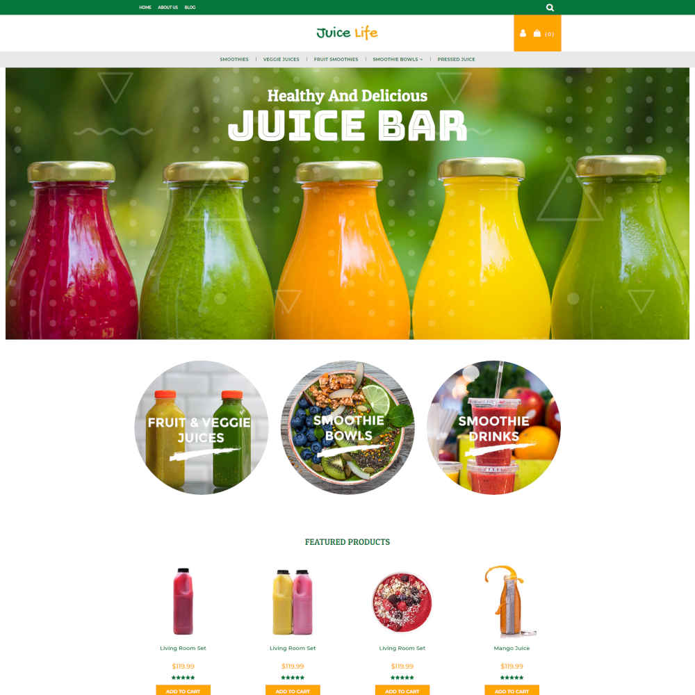 Juice Life – Juice and Smoothies 3dcart Themes is a great choice for any seller interested in giving their customer a refreshing taste of what their store has to offer. Keeping it fresh, all of the site’s elements are surrounded up with the perfect amount of white space.